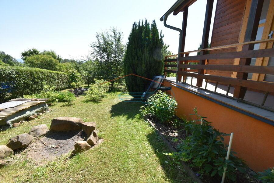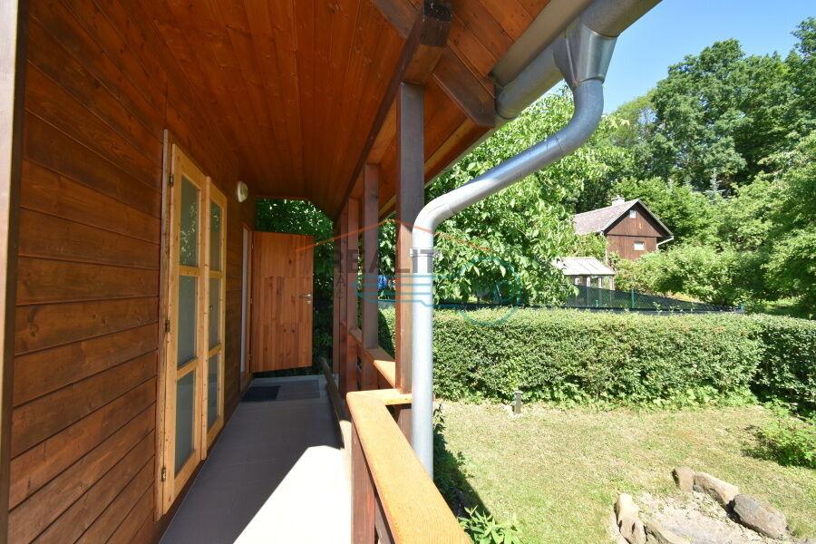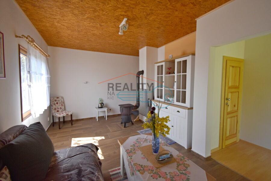 Nabízíme částečně podsklepenou chatu s podkrovím 54m2, balkon, terasa v OV, z roku 2020, kolaudace bude v letošním roce. Chata stojí na vlastním pozemku 373m2, v zahrádkářské kolonii Bořetín. Vedle chaty je postavena kolna na nářadí. V suterénu chaty, který je z betonových tvárnic se nachází 2 místnosti (sklad, letní kuchyně). V přízemí je obytná místnost s kuch. koutem a kamny na tuhá paliva. Do podkroví vedou dřevěné schody, kde je místnost na spaní a balkon, ze kterého je překrásný výhled do okolí. Celá chata je z OSB desek, zateplena čedičovou vatou 10 cm silnou a celá chata je pobita dřevem. Podkroví je ze sádrokartonu, střecha ze šindele. Na parcele jsou ovocné stromy, keře angreštu a rybízu. Pozemek je oplocen živým plotem. Do chaty je zavedena nová elektřina 220W včetně nové rozvodové skříně. Pitná voda je dovážková (v provozu od května do října). Na pozemku se nachází silný proud vody a je možnost zhotovit vrtanou studnu. Dále je možnost na pozemku zhotovit septik, nebo čističku odpadu. Členský poplatek je 100,-Kč ročně a poplatky zahrádkářskému spolku 2.500,-Kč/rok. Parkování na pozemku, nebo na parkovišti u vjezdu do areálu. Chata se nachází v chráněném území Českého středohoří v překrásném okolí Máchova kraje, lesy, rybníky. Do České Lípy je to necelých 5 km. Cena 2 400 000,-Kč, včetně včetně katastru nemovitosti, právních služeb a provize RK.